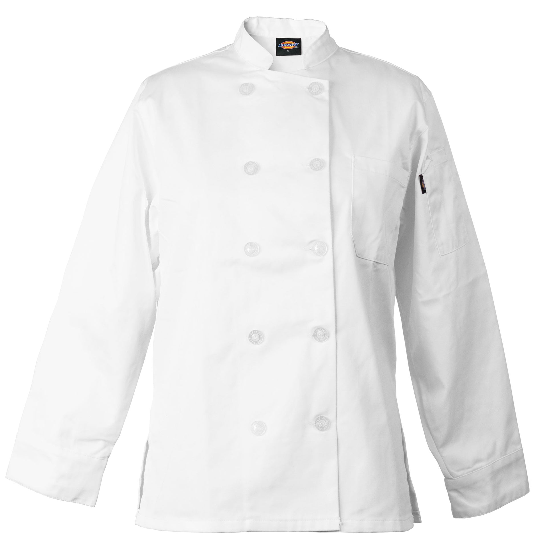 This pearl button classic chef coat /chef jacket by Dickies is specifically cut slightly smaller and more fitted than our Annabella style for women. It features a junior-missy cut with slits on both sides of the hips for a slender, flattering fit. It is also double breasted, with an inset front pocket as well as a thermometer pocket. It is made of a 65/35 polycotton blend to keep things cool. Special Dickies features: Micro-sueded ever soft fabric. Durable construction. Stain release finish. 65/35 Poly Cotton.